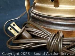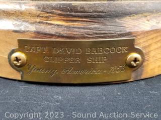 Lot Details: Has a plaque "Capt. David Babcock Clipper Ship Young America - 1853". Top light works, unsure how to turn on the light in the base. Some wear to finish from age, been painted over.