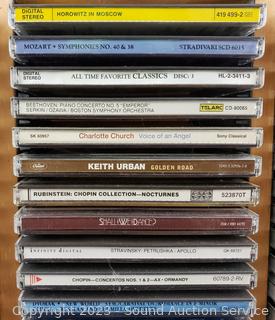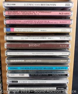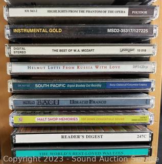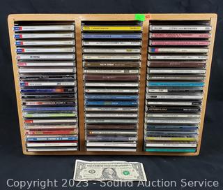 Lot #0215: Wood CD Rack w/60 Music CD's