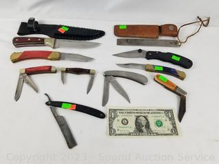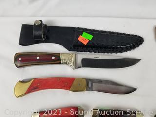 Lot #0134: 10ct Fixed Blade & Folding Knives & Honing Steel