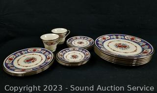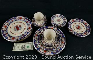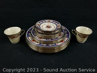 Lot Details: 5 Dinner Plates, 3 Salad Plates, 3 Snack Plates, 3 Saucers, 2 cups.