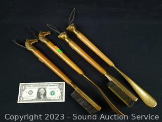 Lot #0220: 2 Brass Shoe Horns & 2 Brushes