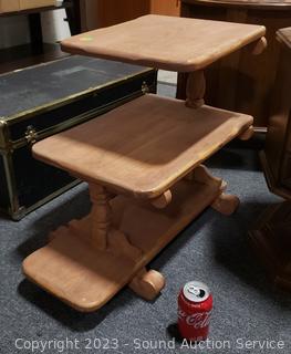 Lot #0184: 3-Tier Wood Stained Finish Side Table