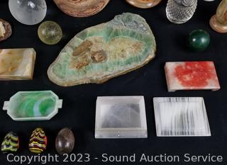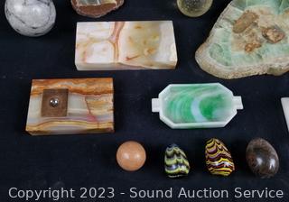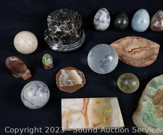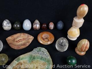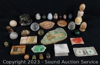 Lot #0051: Assorted Stone Eggs, Ashtray's, Slabs, Decor