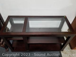 Lot #0399: Beveled Glass Top Dark Finish Hall/Media Console