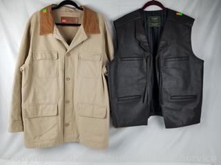 Lot #0136: John Wayne Collection Leather Vest & Jacket S:2XL