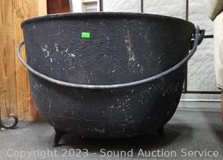 Lot #0160: Large Cast Iron Footed Cauldron Fire Pit/Pot