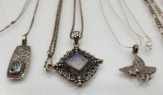 Lot #0249: 5 Sterling Necklace w/Pendants