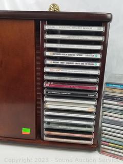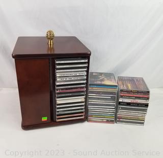 Lot Details: Refer to photos for titles, genre, etc. Some scuffs on CD rack. 13.5" H x 11.5" x 11.5" CD rack.