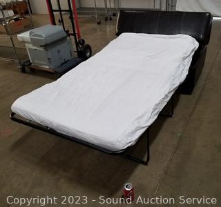 Lot Details: 19" H x 47" x 27.5" ottoman, 39" x 70" x 18" bed. Mattress has cover, clean, don't see any issues.