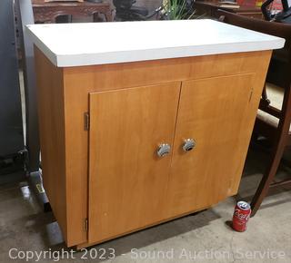 Lot Details: 33" H x 31.5" W x 16" D. Various wear to finish, some damage to laminate.