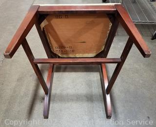 Lot Details: Table has caw feet. 29" H x 40" x 23" table with (2) 18" drop leaves. Various scuffs & wear to finish, some stains in upholstery.