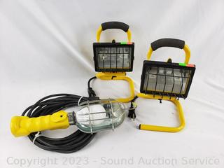 Lot #0335: 2 Halogen Lights & 20ft Drop Light