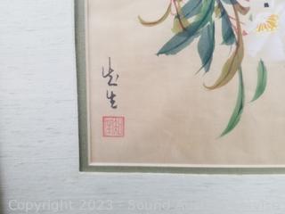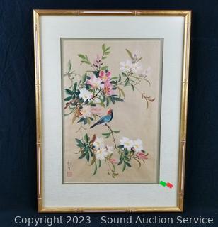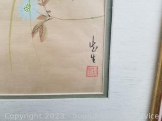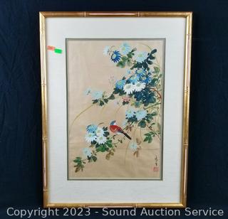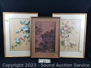 Lot #0123: 2 Original Floral Bird Paintings & Print