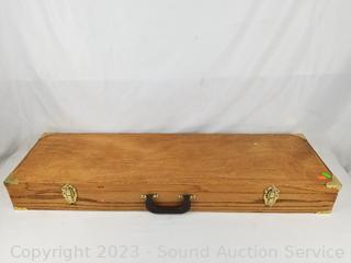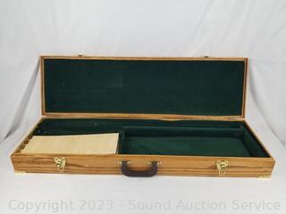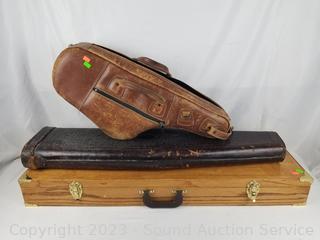 Lot Details: Wood case is for shotgun cleaning items, has some items. 36" x 10" x 4". others 34" x 8" x 3.5" & 24" x 6" x 9" sax case.