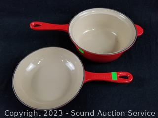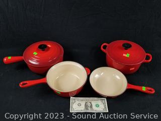 Lot #0177: 4 Le Creuset Cast Iron Enamel Pots & Pans w/2 Lids