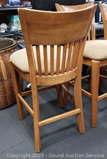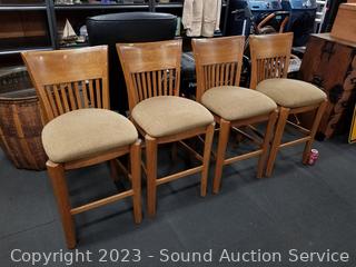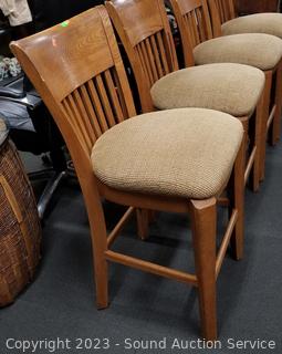 Lot #0009: 4 Oak Upholstered Counter Height Bar Stools