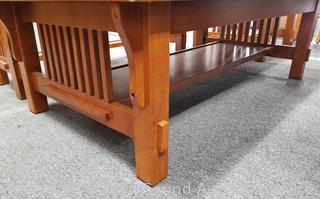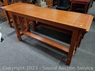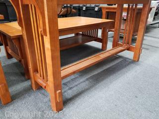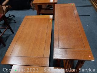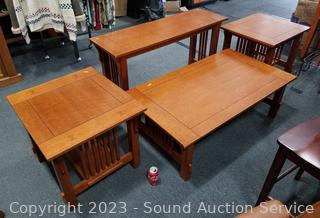 Lot Details: 27" H x 50" x 16" hall table, (2) 22" H x 24" x 27" side tables, 16" H x 28" x 60" coffee table. All in great condition, some minor scuffs, wear.