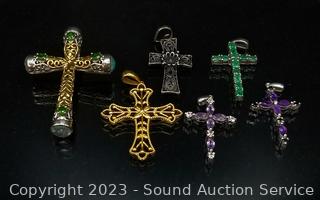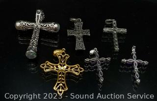 Lot #0192: 6 Sterling Cross Pendants