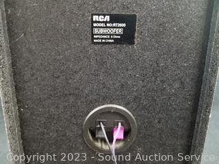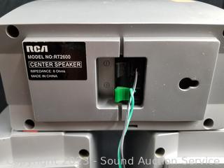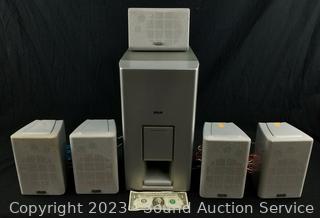 Lot Details: Sub, Center, 2 rear & 2 Front speakers. Signs of wear from use.