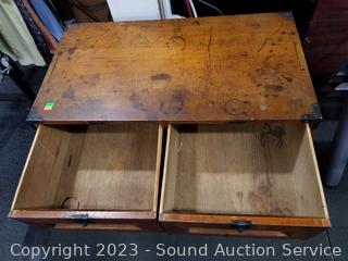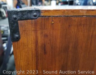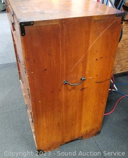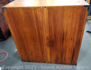 Lot Details: Wrought iron pulls, skeleton key locks. Various scuffs & wear to finish. 28.5" H x 28" W x 15" D.