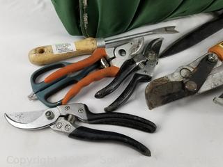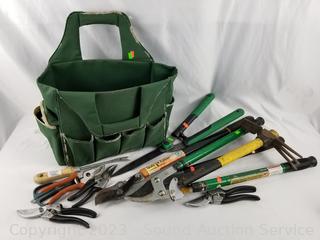 Lot Details: Tool tote, mattock, loppers, pruners, trimmers, cultivators, shovels, etc. Refer to photos for lot contents.