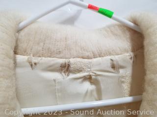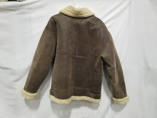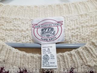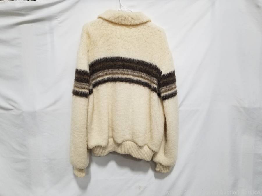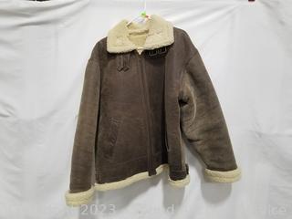 Lot Details: John Ashford Scotland S:XL, Leather & Sheep's Wool Jacket (don't see a tag), approx. XL. Wool Jacket, label is worn and interior lining has some damage. Approx. S:XL.