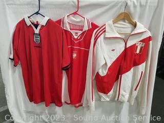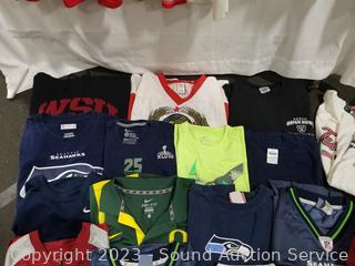 Lot Details: Russia Jersey, WSU Sweater, England Shirt/Shorts, Polska Jersey, Adidas Jacket, Nike Dri-Fit, Seattle Seahawks, Shirts, Jersey, Cougars Jacket, etc. Most appear to be S:L.