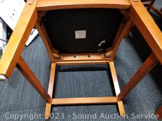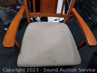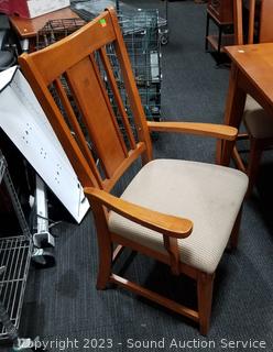 Lot Details: 31" H x 64" x 42" with 18" leaf. Some scuffs & wear to finish. 2 chairs are captains chairs. Overall great condition.