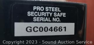 Lot Details: Comes with combination. 60" H x 29.5" W x 22.5" D. Various stickers on the front.