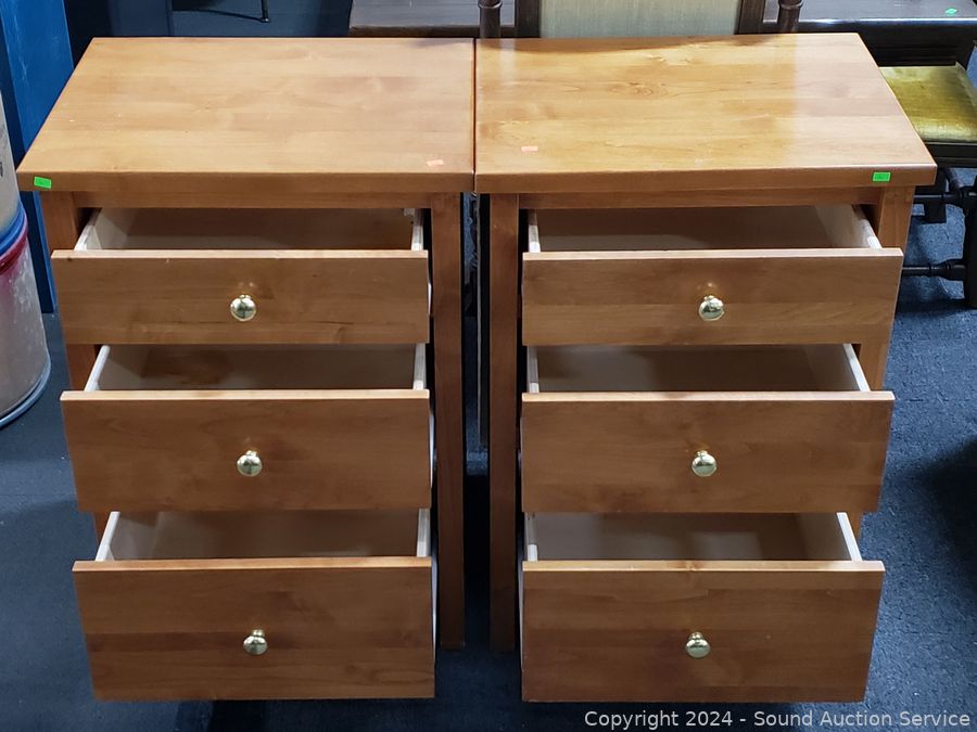 Lot #0064: 2 Maple? 3 Drawer Nightstands/Side Tables