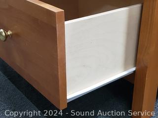 Appear to be all wood construction. Roller drawer guides. 32" H x 22" W x 18" D. Both appear to be in great condition, don't see any major issues.