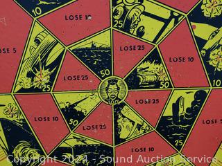 Lot #0123: WWII Anti-Japanese Propaganda Dart Board w/Darts