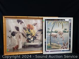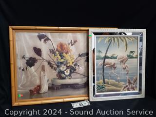 Lot #0056: 2pc Flamingo & Still Life Print Artwork