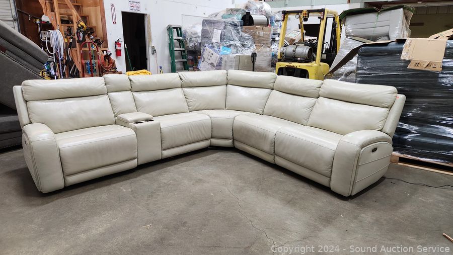 Lot #0008O: Gearhart 6pc Leather Power Reclining Sectional w/Power Headrests
