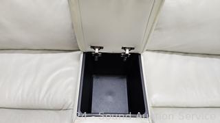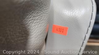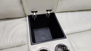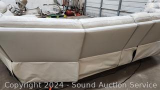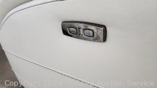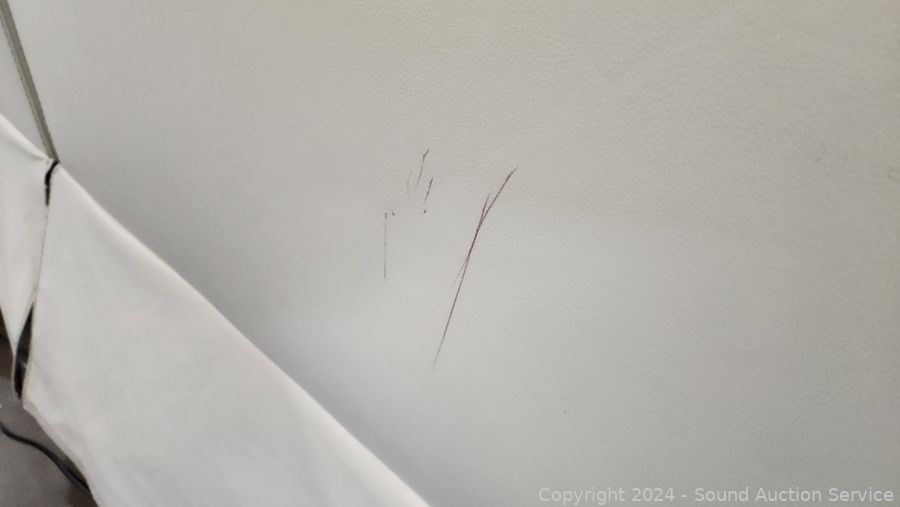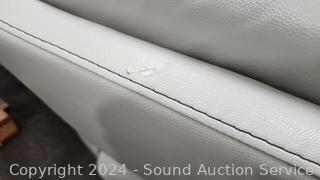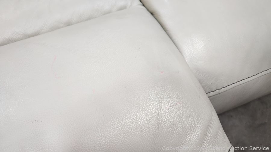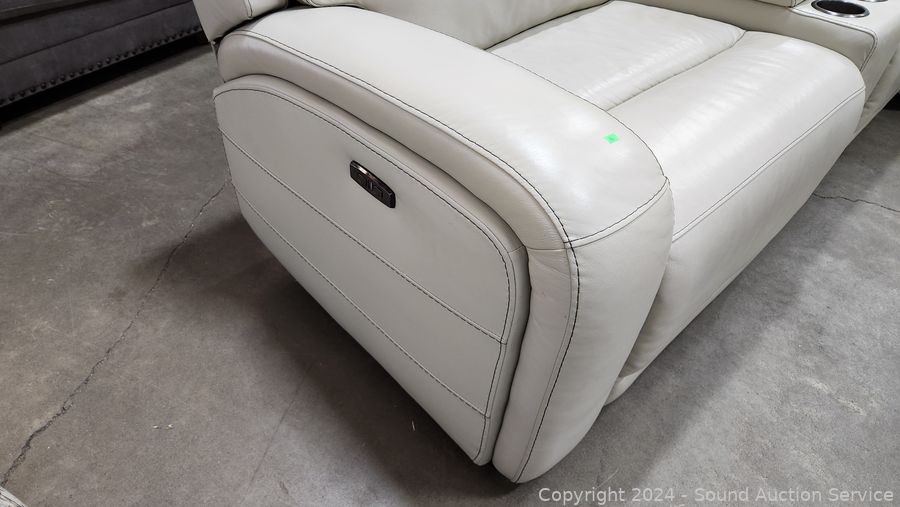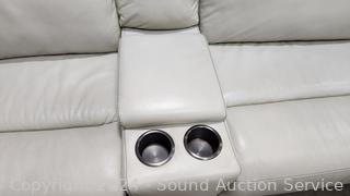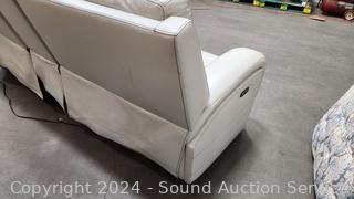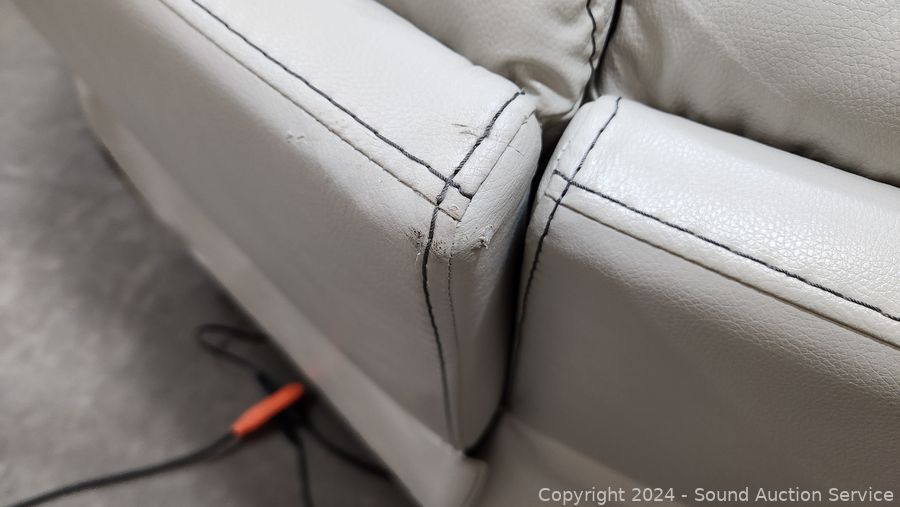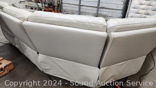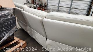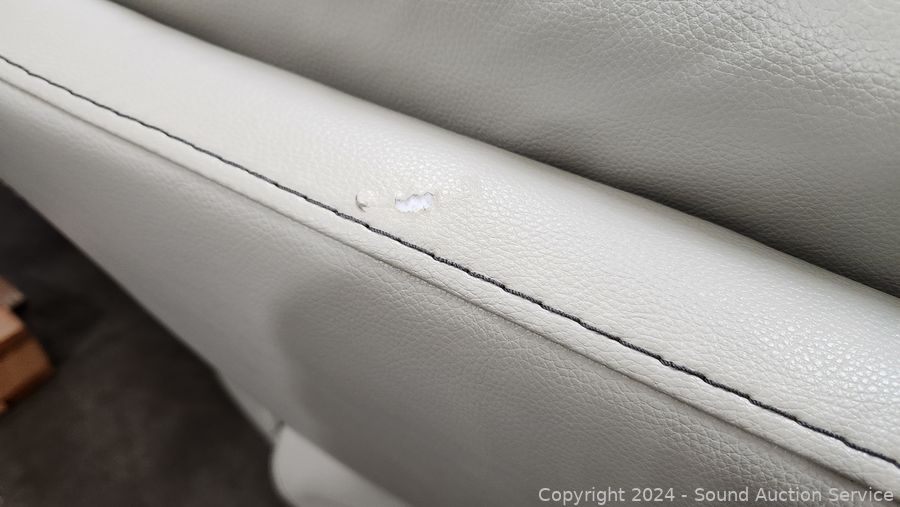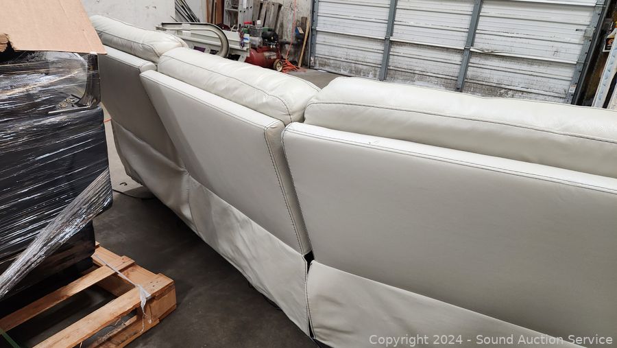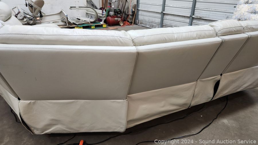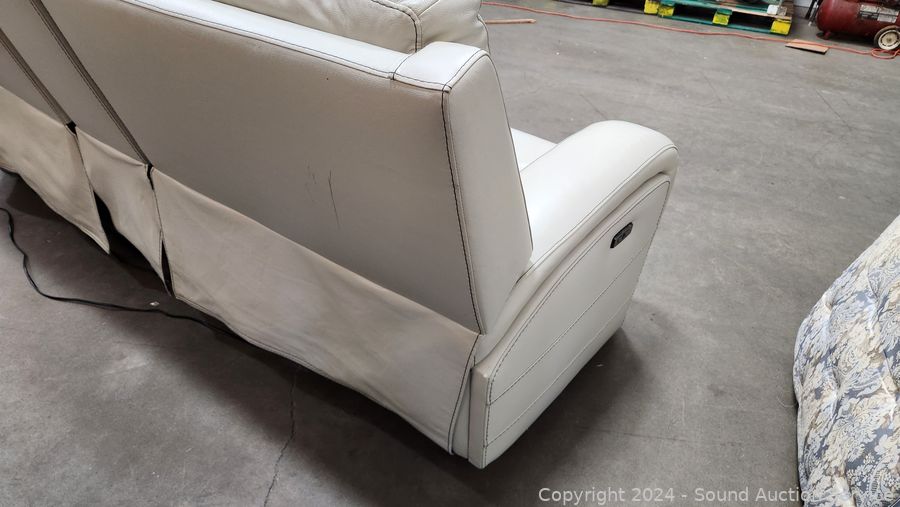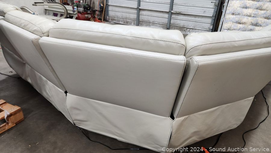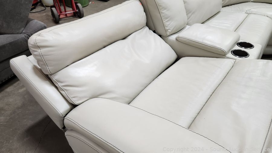 Top grain leather with vinyl match on sides and back, three power recliners with power headrests, 2 power outlets and 4 USB ports. The way we have it currently configured is 10ft x 10ft. Minor discoloring in areas, some ink marks in areas, one bigger scratch on the back and 3 or 4 minor scuffs on the back. Everything works as intended, overall good condition. LOCATION - "C" BUILDING.
