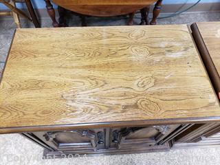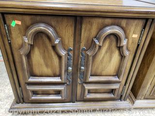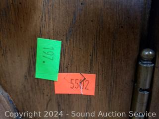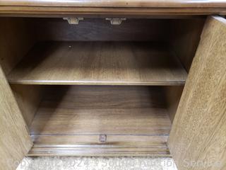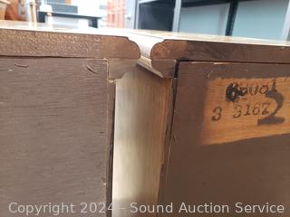 Some scuffs, wear to finish. 22" H x 26" x 15". Matches the dresser in the next lot.