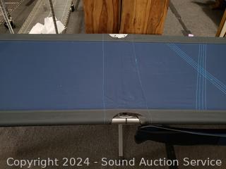 19.6" H x 82.6" L x 31.1" W. 300LB capacity. Doesn't appear to have ever been used, still had foam wrapped around the legs. Don't see any issues.
