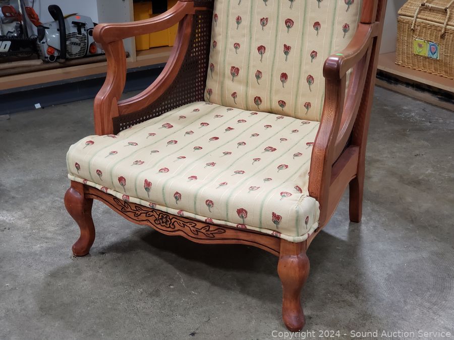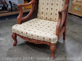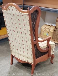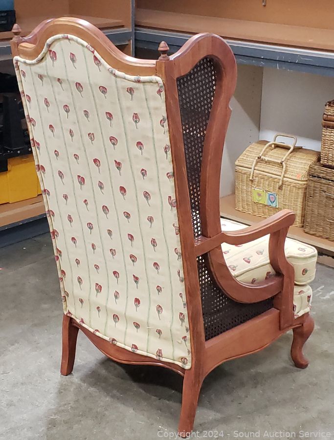 Lot #0031: Vintage Cane Wingback Floral Print Armchair