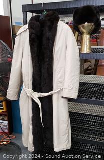 Lot #0093: Vintage Fur Lined Trench Coat & Ushanka Hat