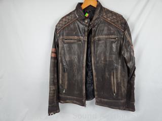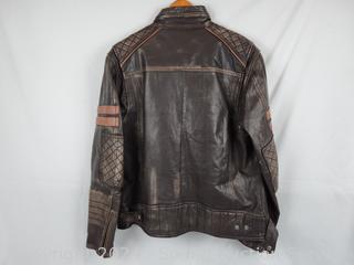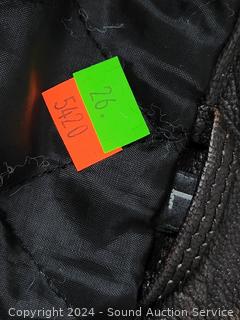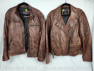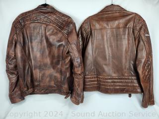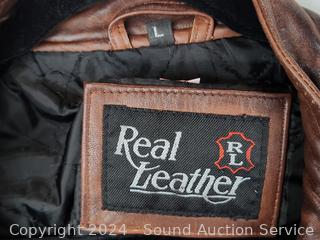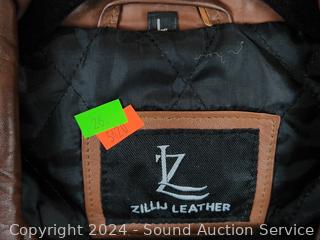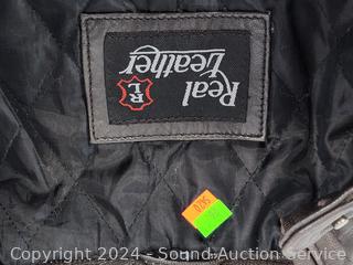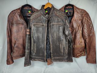 Brands include 2 Real Leather, 1 Zillij Leather. All with signs of wear from use, 1 with a white marker stain on the arm, overall good condition.