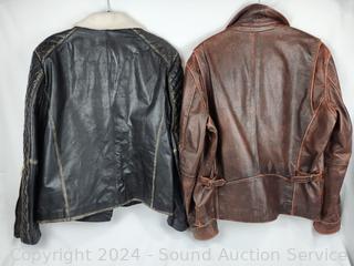 Brands include (2) LM Jackets S:L, Clara Leather Jacket S:M (looks to be a custom jacket, lining has some damage, some marker writing on the back, various wear from use.