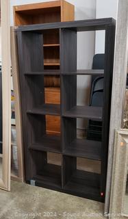 Lot #0037: 8-Cubby Contemporary Dark Finish Pass-through Shelving Unit