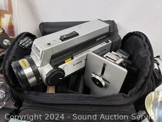 3 tripods, Canon Auto Zoom 318M, converter lens, rubber eye cup, camera bags. Refer to photos for more details.