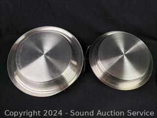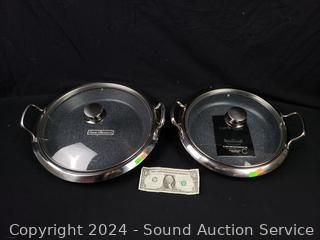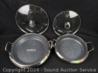 Lot #0198: Curtis Stone 12" & 13" Stainless Enamel Multipurpose Pans w/Lids