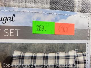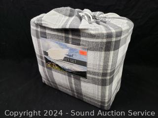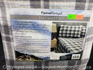 Lot #0289: Flannel From Portugal Gray Plaid Sheet Set