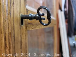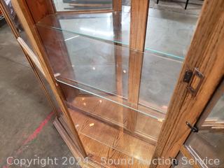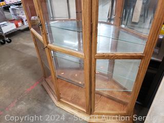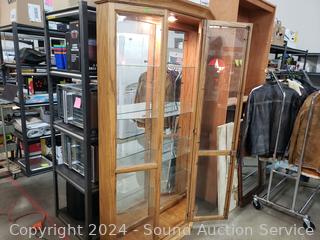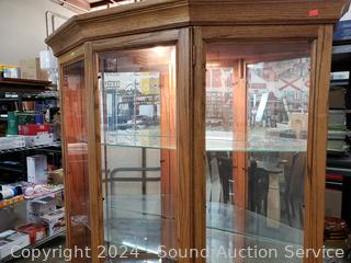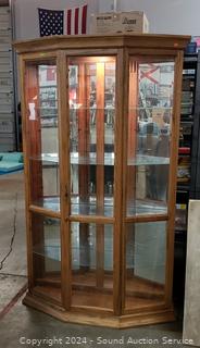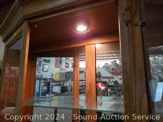 Lot #0063: Oak Lighted Mirrored Glass 4-Shelf Bookcase