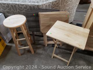 Lot #0074: Set of 4 Folding TV Trays & Stool