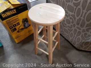 29" H x 13" Dia. stool. (3) 19" x 14" & (1) 17" x 23.5" TV tray surfaces. Some markings, scuffs in finish.