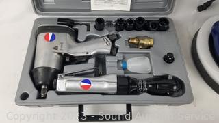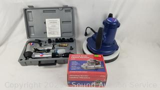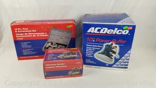 Lot #0039: 10" Buffer, Devilbiss 13pc Air Tool & Accessory Kit & Sander