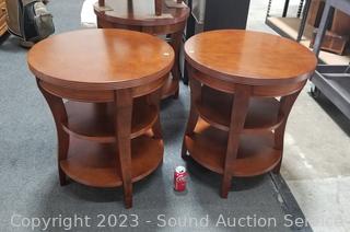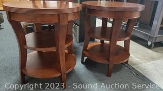 Lot #0024: 2 Cherry Finish 3-Tier Side Tables